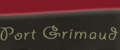 Port Gimaud, Haupteingang nach Port Grimaud dem Lagunenort an der Cote d' Azur Port Grimaud, kleines Fischlokal  ausserhalb von Port Grimaud Vom Kirchturm Port Grimaud, Blick über Port Grimaud in den Golfe von Sainte-Tropez Port Grimaud am Abend, die Kirche von Port Grimaud und der Dorfplatz